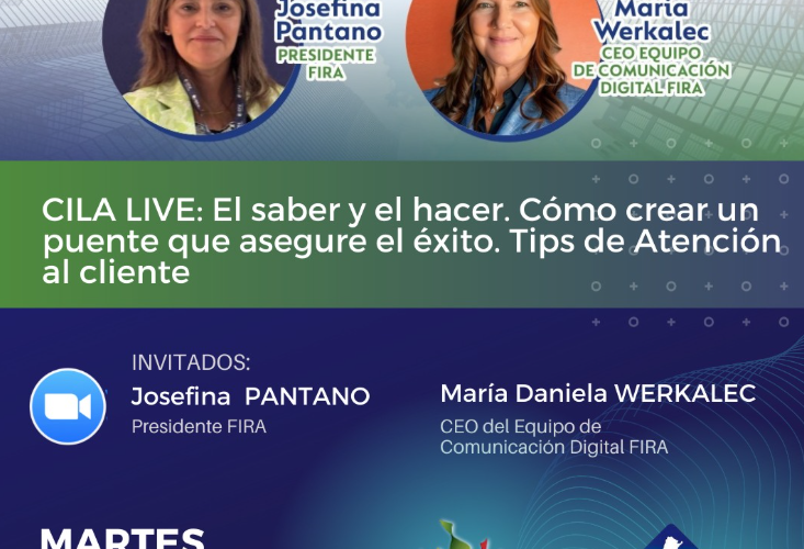 El encuentro llevó por título “El saber y el hacer. Cómo crear un puente que asegure el éxito. Tips de atención al cliente”, y compartí el espacio con Josefina Pantano, presidenta de FIRA, desde mi rol como responsable de la Comunicación Digital de FIRA.