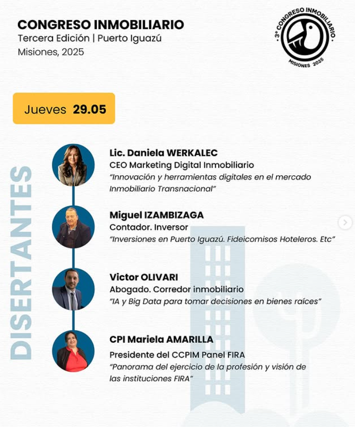 Quiero agradecer especialmente al Colegio de Corredores Públicos Inmobiliarios de Misiones por la organización y la invitación, y a FIRA por el acompañamiento institucional.